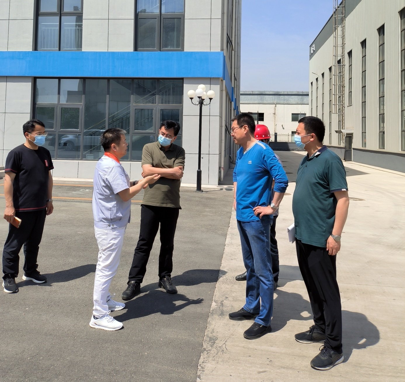 公司董事长谢正泽和公司其他领导陪同管绍波书记一行深入生产车间、办公楼、员工公寓、食堂等场所进行了参观检查,并简要汇报了公司生产经营、技术研发、市场前景、疫情防控和员工生活等相关情况。